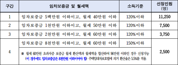 ※현 거주지 월세가 20만원 미만인 경우 월세 금액만 지원