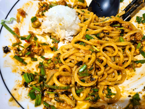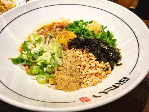 마제소바에 있는 밥은 로스카츠와 함께 나온 밥을 넣은 것입니다. 마제소바에는 밥이 제공되지 않습니다.