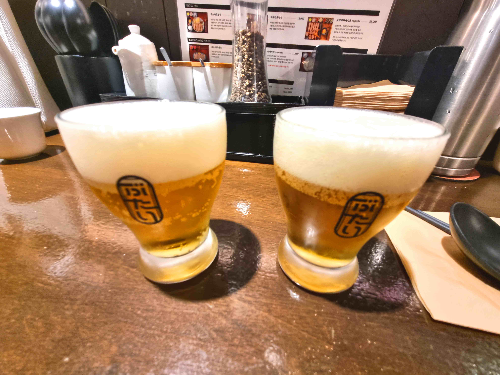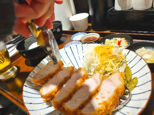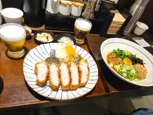 낮시간이었지만 한 잔 했습니다. 돈카츠 고기 육질과 잘 어울리는 조합니다.