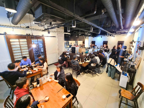 하지만 출입문을 열고 들어가는 순간 지하로 내려가는 계단을 따라 웨이팅 손님이 있었습니다. ^^;