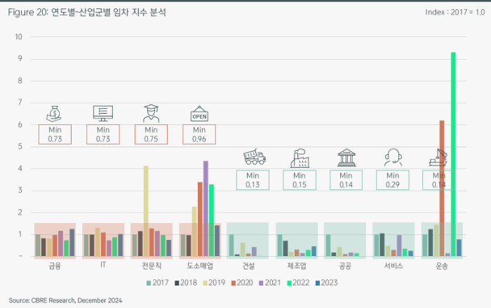이러한 CBD의 공급 집중은 공실률 증가 ⇨ 임차인 유치 경쟁 심화 ⇨ 임대료 조정로 이어질 것으로 예상된다.